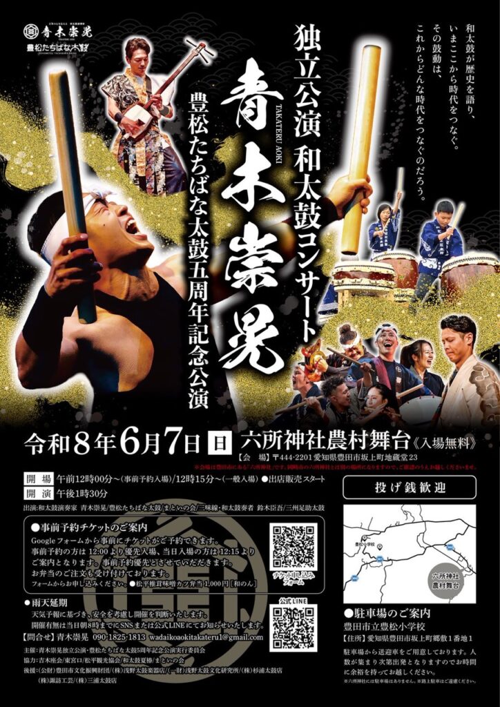 - 【独立公演 和太鼓コンサート 青木崇晃】豊松たちばな太鼓 五周年記念公演!